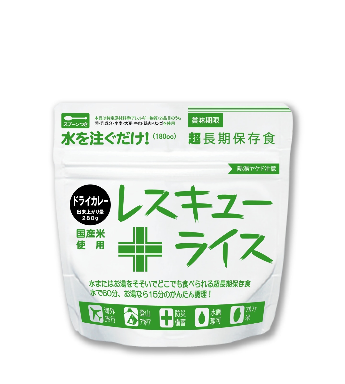 レスキューライスはオリジナル製法にて7年保存可能なアルファ米です。