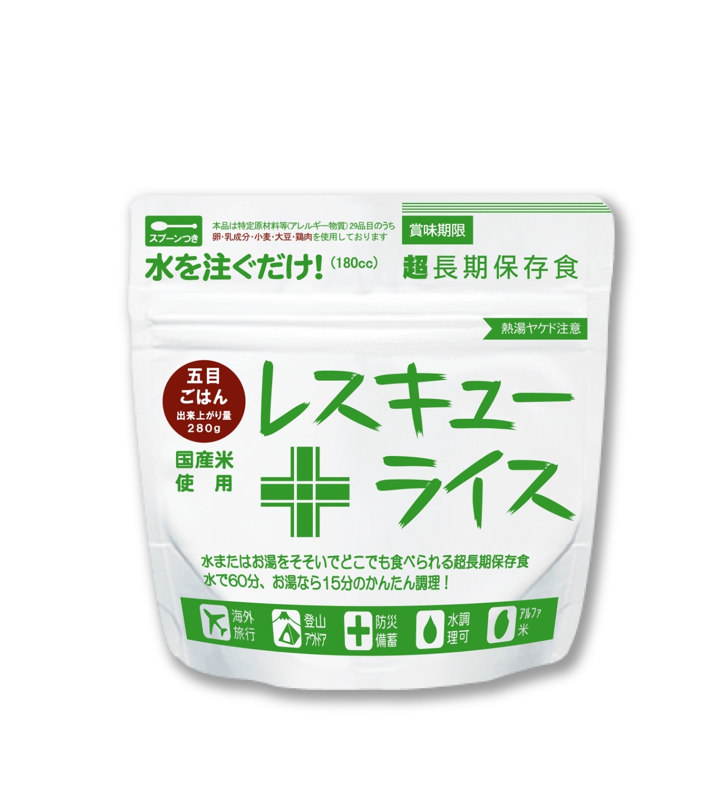 レスキューライスはオリジナル製法にて7年保存可能なアルファ米です。